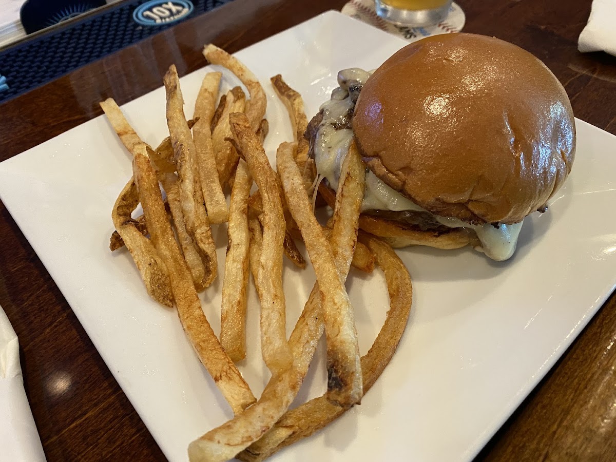 The cheeseburger was delicious. My only criticism is that it was too thick and hard to eat. The onion rings were big and crispy. The fries were perfectly cooked with a nice touch of seasoning.